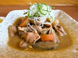 小江戸黒豚のクセのないフレッシュなモツを地元食材「秩父味噌」でじっくりと煮込みました。食感の良いモツとお野菜をお楽しみくださいお酒にもピッタリ!